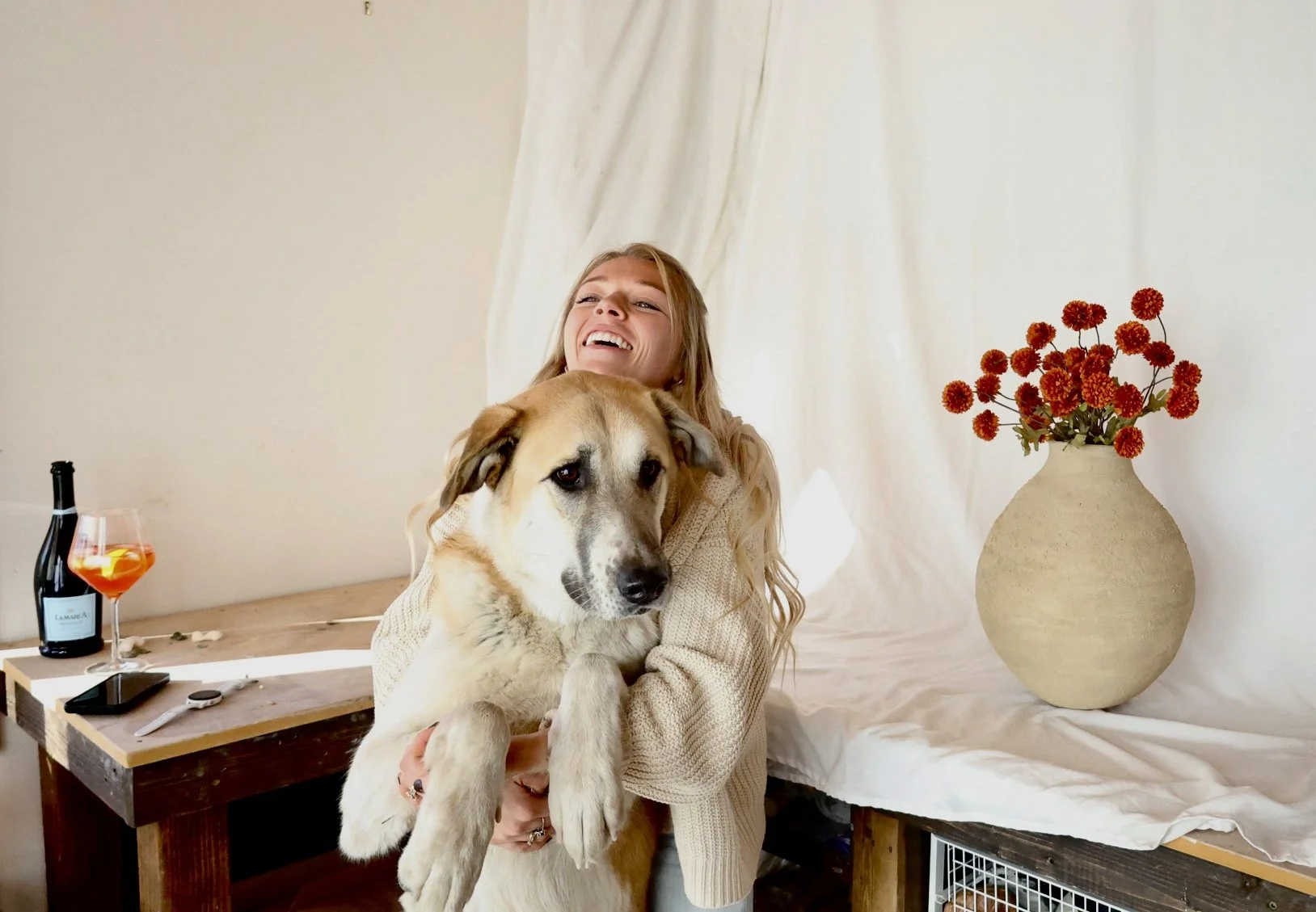 When I’m not creating, you can find me on a wine walk with my husband, Sam, and our dog, Lady.